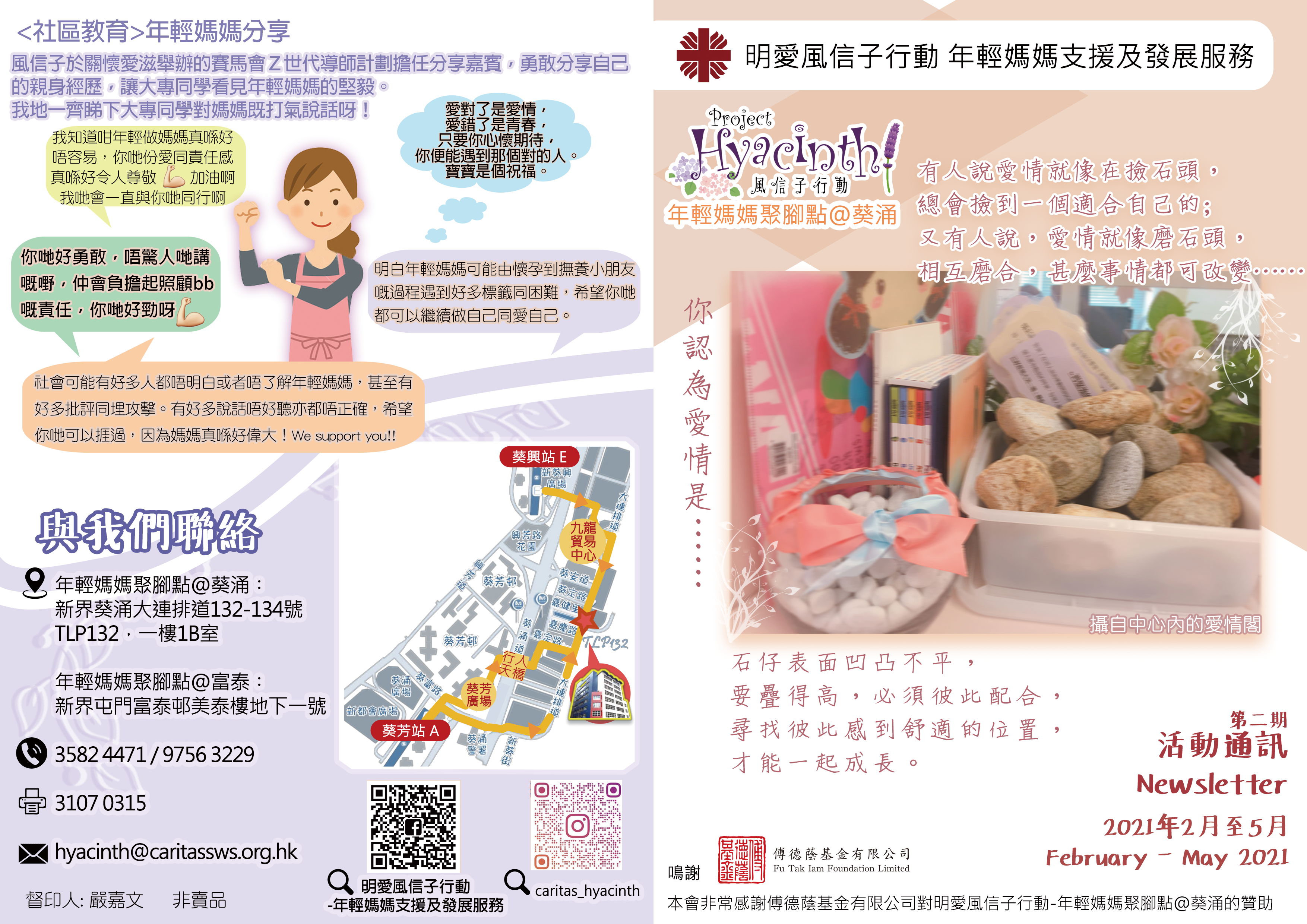 為24歲或以下年輕媽媽提供全面完整性的支援服務,由香港公益金資助。